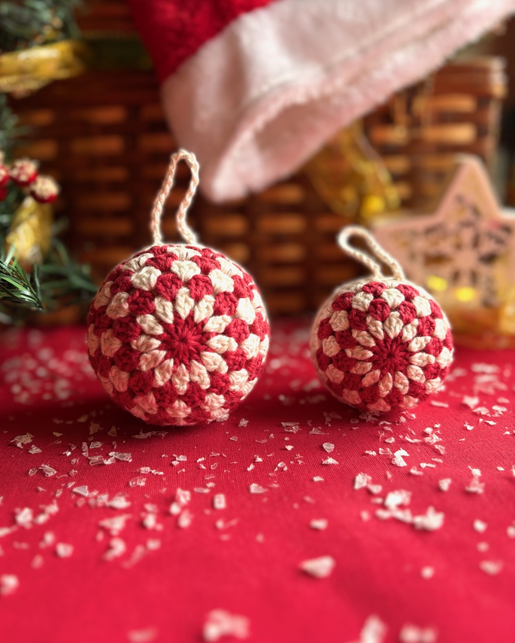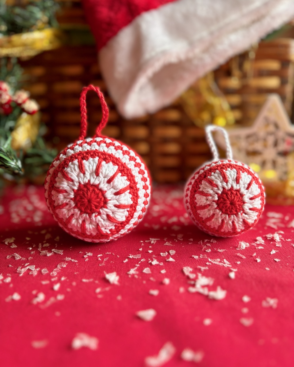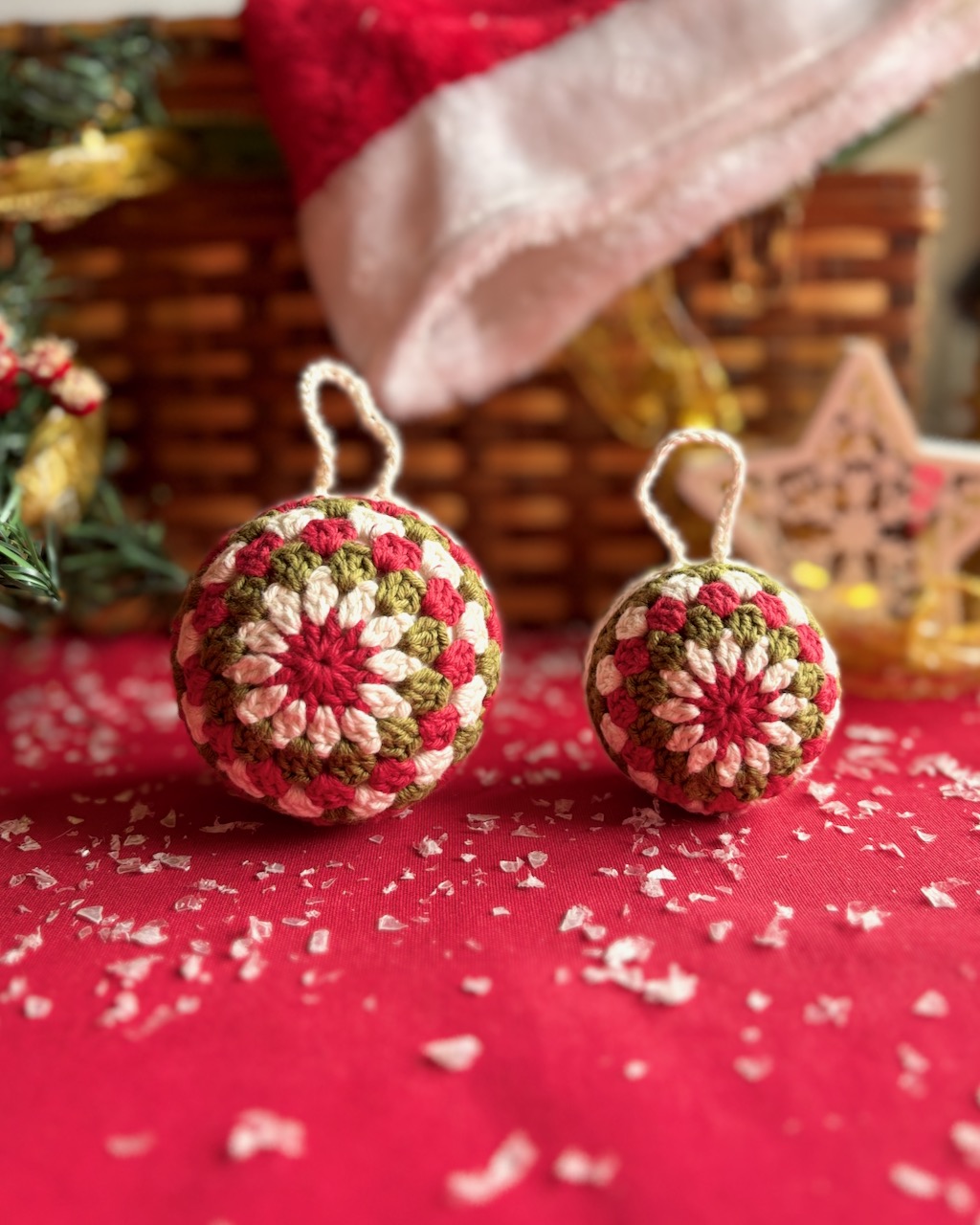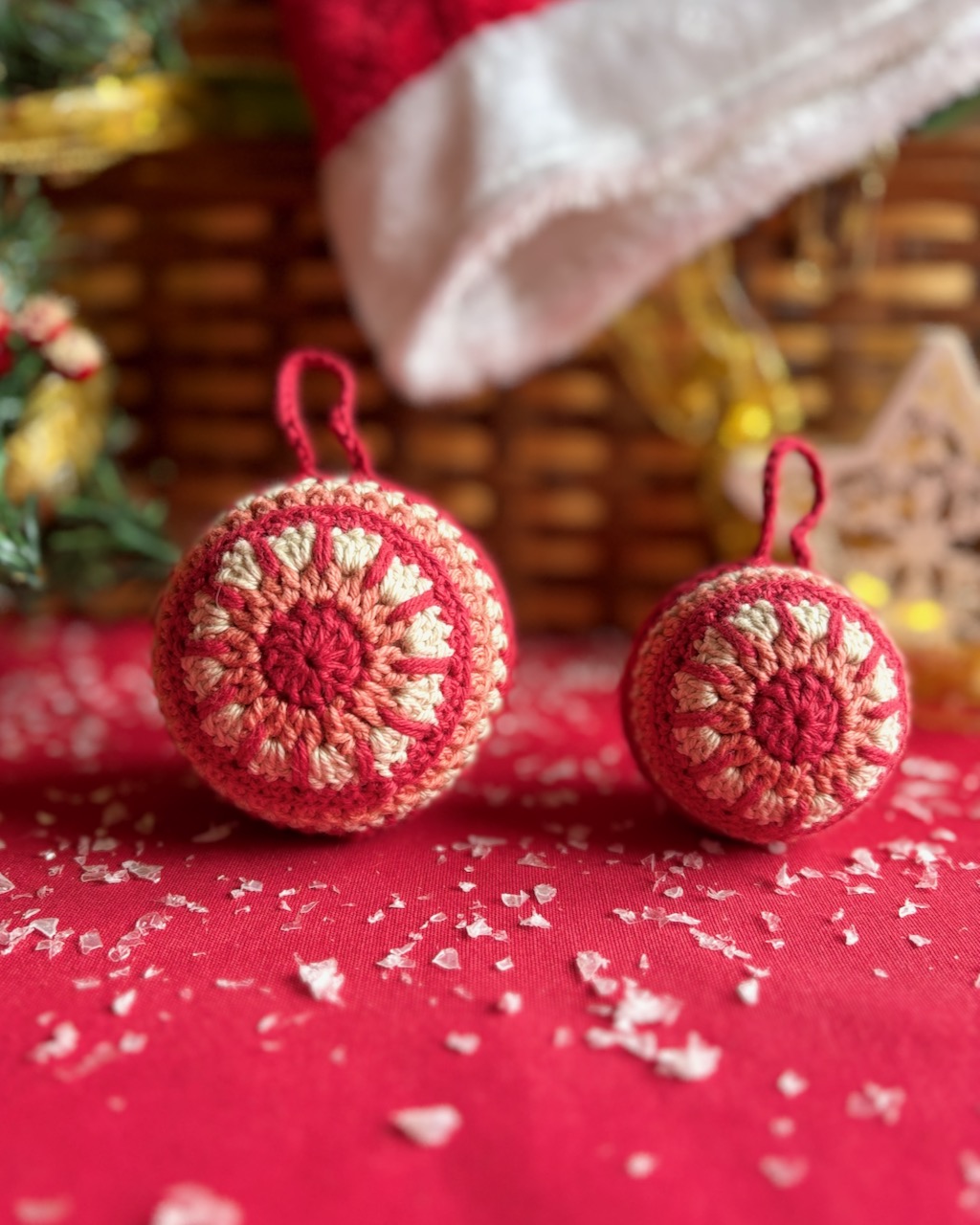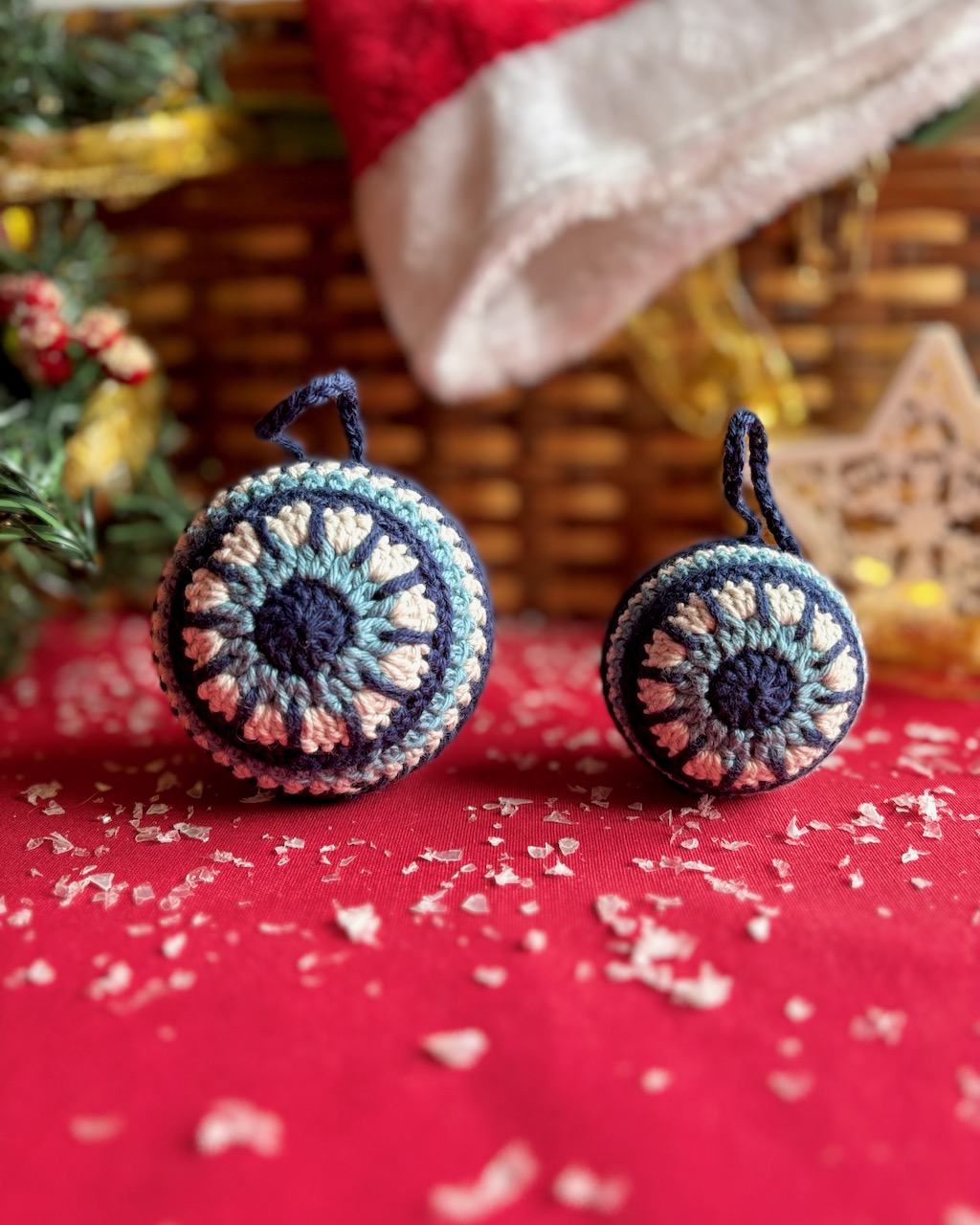 As nossas bolas de Natal feitas em croché são o toque perfeito para uma decoração de Natal única e original.