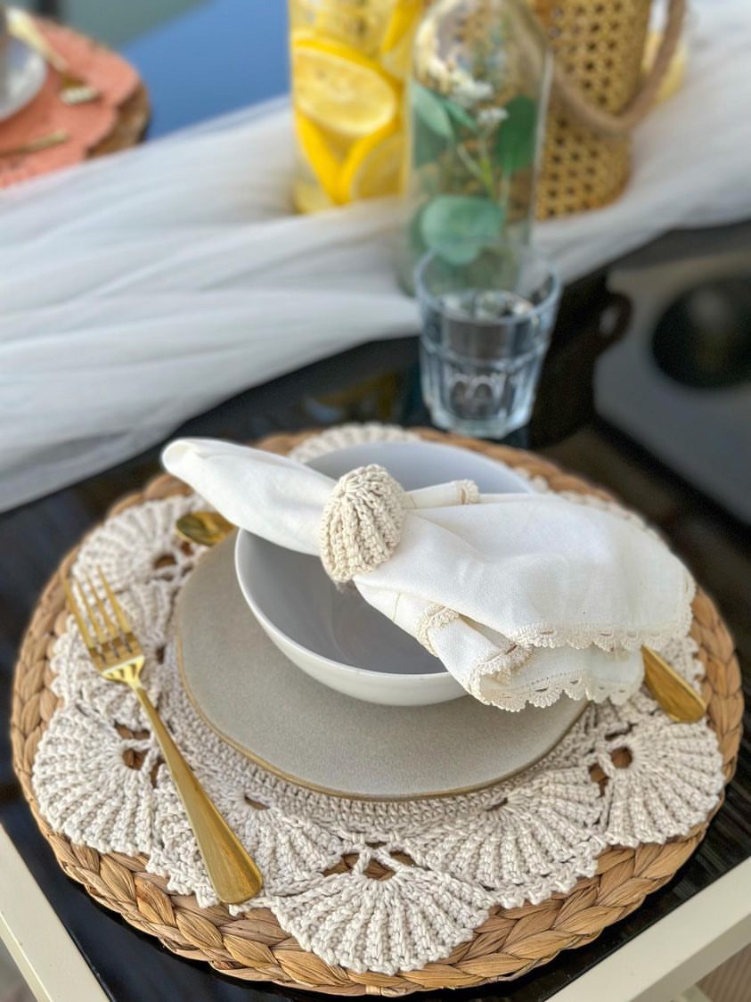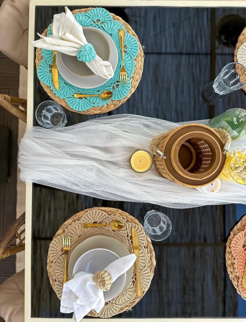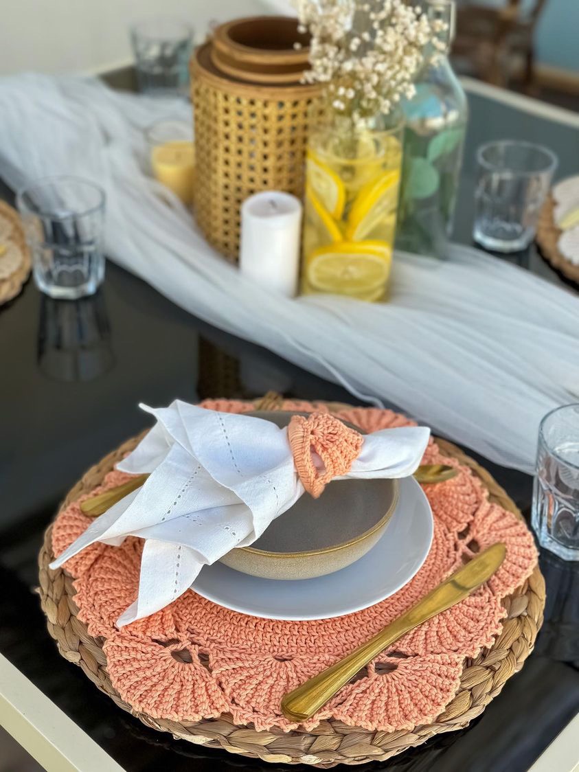 Os marcadores de mesa Coral Sands trazem o mar e a areia para a sua mesa, com a suas conchas delicadas em croché a envolver o prato. Perfeitos para quem adora praia e o mar e deseja trazer um toque original para a sua mesa.