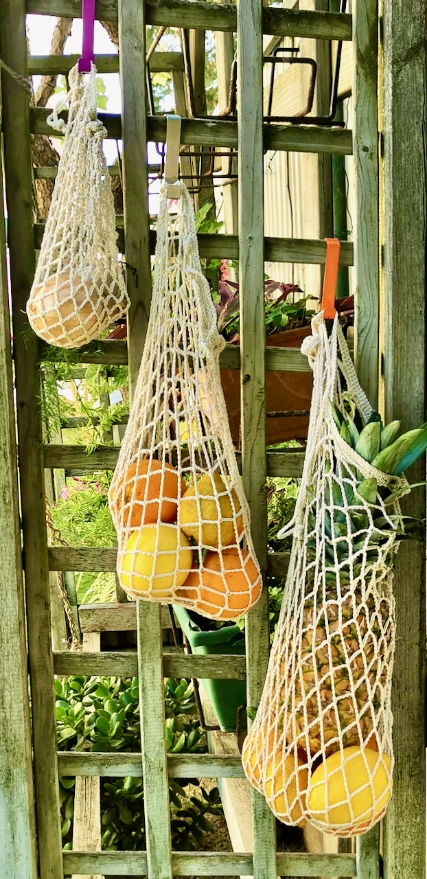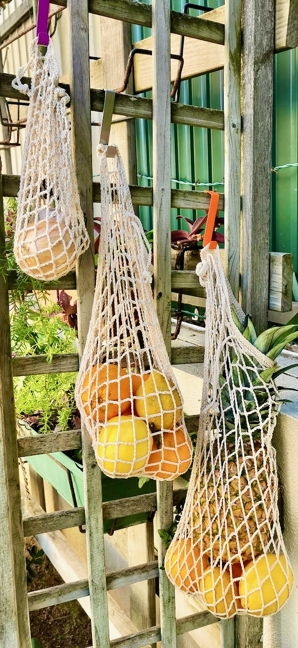 1 Saco grande - Usando como exemplo limões, transporta 10 a 15 peças de fruta.